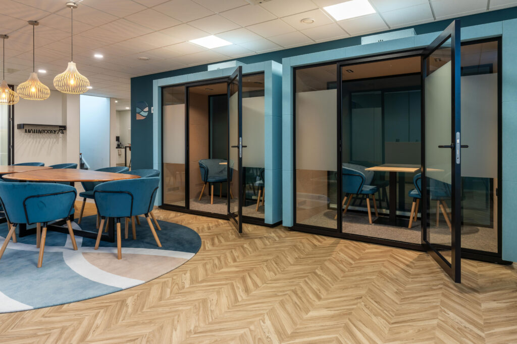 De overige ruimtes kregen elk hun eigen functie: werkplekken, overleg- en belruimtes en een ruime lunch- en trainingsruimte voor zorgprofessionals. Alles met één doel: een prettige werkomgeving creëren waar mensen graag samenkomen, zich thuis voelen en trots zijn op hun nieuwe gezamenlijke identiteit.